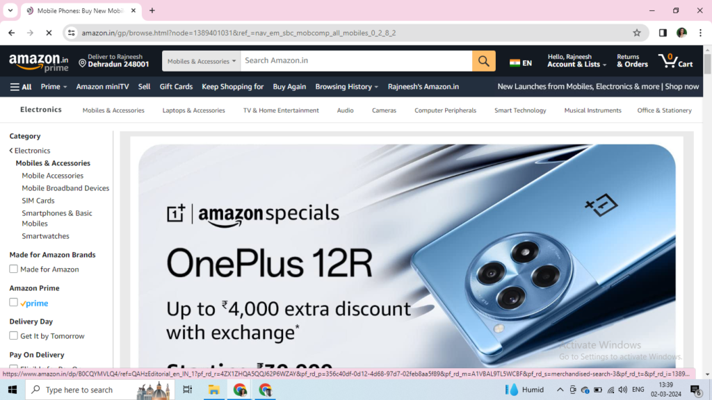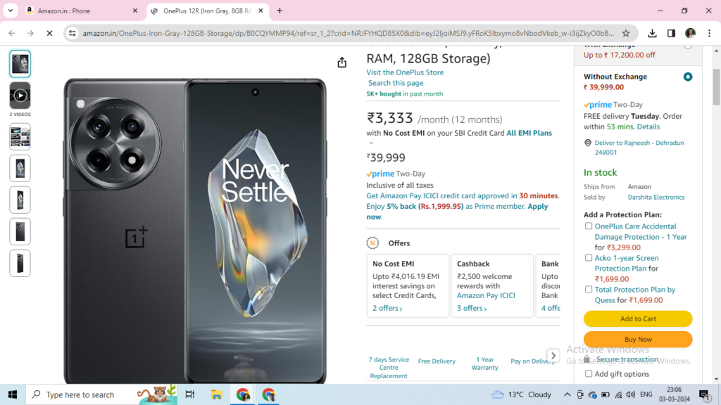 Select your desired product, for instance you like “One Plus 12R”, select the phone.
