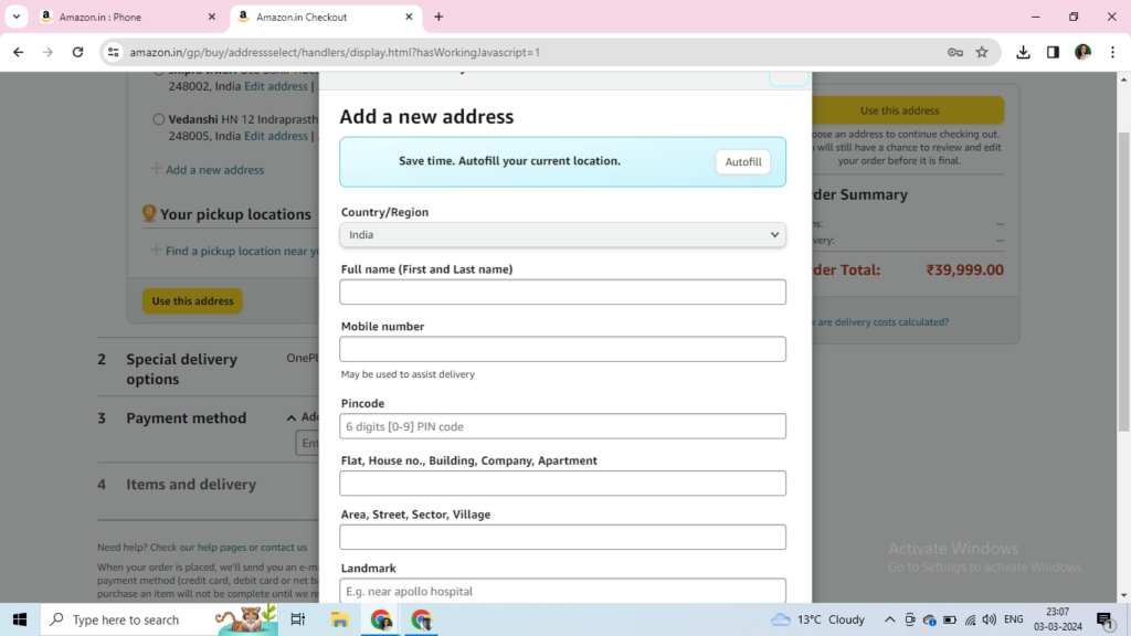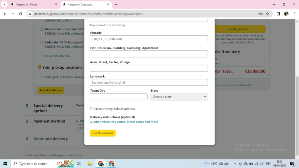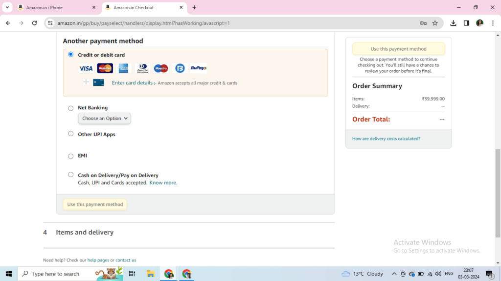 Finally, after putting the details of your desired payment mode, you can place in the order.