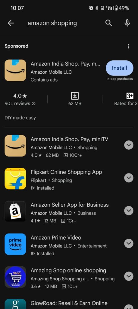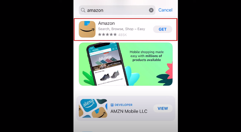 After opening App store, type “Amazon shopping app” on the search bar.