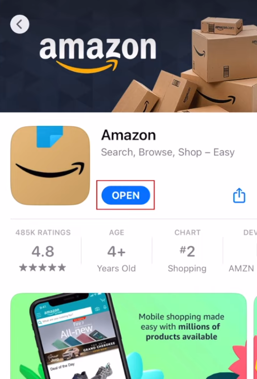 Tap on “Get” on the Amazon app and open it.
