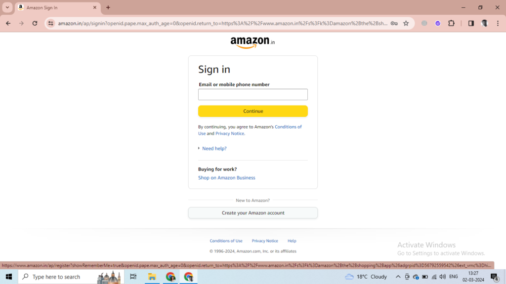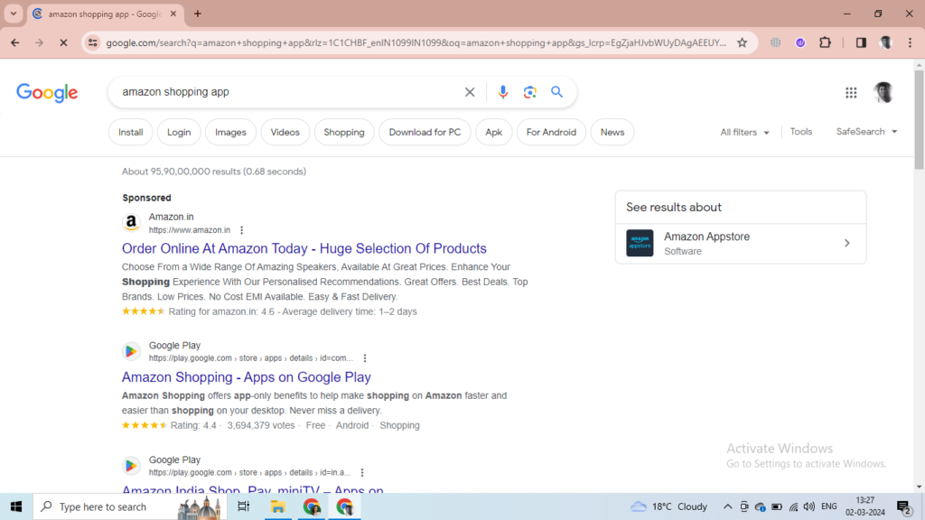 Open google chrome, Firefox or edge in your PC and type “Amazon Shopping App” in the google search and select the first link.