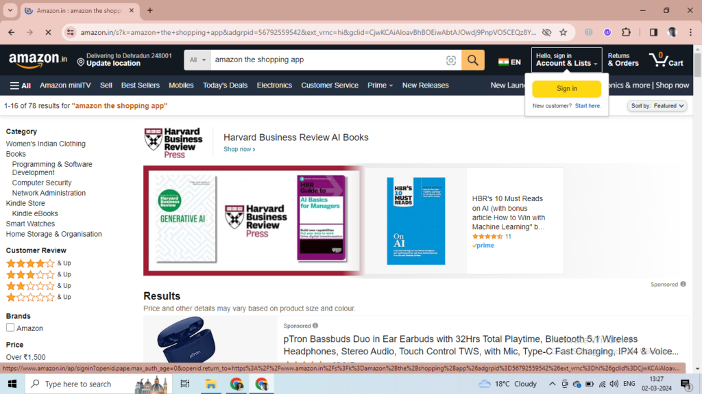 After Signing in, you can search for any product of your desire.