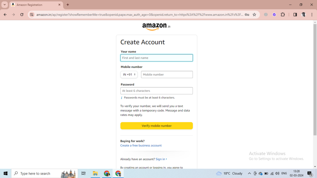 Tap on “Create your Amazon account” on the bottom.